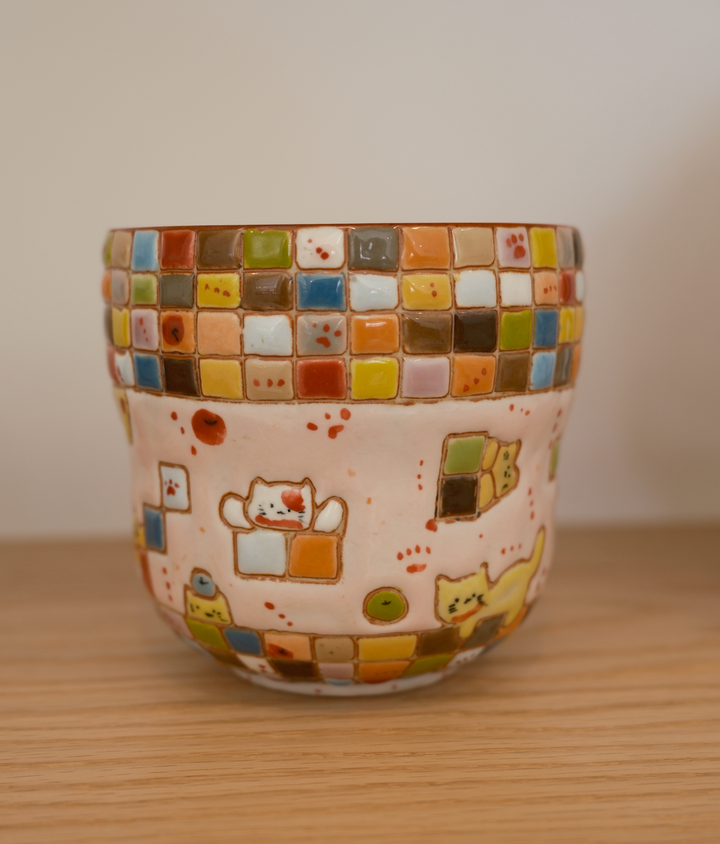 Puzzle Checkered Cat Cup